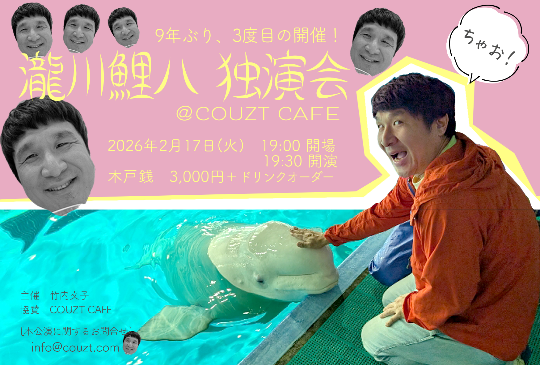 瀧川鯉八 独演会@COUZT CAFE 9年ぶり、3度目の開催!2026年2月17日(火)19:00開場19:30開演 木戸銭3,000円+ドリンクオーダー お席のご予約は終了しました。ただいま【お立見でのご案内】の受付 ▶︎▶︎▶︎ more